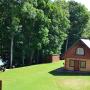 Бревенчатый коттедж с камином Dālderi расположен в тихом и зеленом районе на берегу озера Бирини. Деревянный интерьер дома оформлен в классическом стиле. На первом этаже расположены кухня и гостиная, а на втором этаже — спальня. Дополнительная информация и цены -